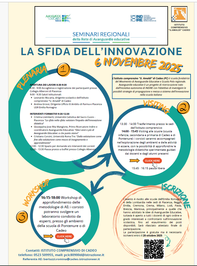 LA SFIDA DELL’INNOVAZIONE - Seminario regionale di Avanguardie Educative organizzato dall’Istituto comprensivo “U. Amaldi” di Cadeo (PC) - 6 NOVEMBRE 2025